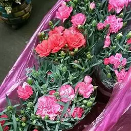四季康乃馨(Perpetual Carnation),植株高大,花茎强韧,花大,重瓣,一般为温室栽培。切花多用此类品种。