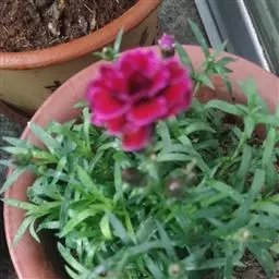 盆栽康乃馨,应选内径较大的高筒盆,盆底先施足含钾、钙、氮、磷的基肥。移植后,晴天每天浇水一次,保持盆土潮润。因为康乃馨既怕水涝,也不耐干旱。