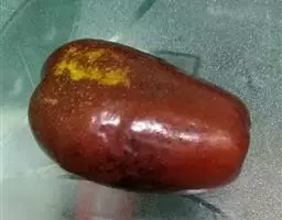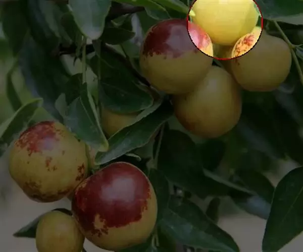 七月鲜 果实卵圆形,果面平整,平均果重29.8克,最大74.1克。果个均匀,果皮薄,深红色,表面蜡质较少。可溶性固形物含量28.9%,可食率98.8%。鲜枣味甜,肉质细,极宜鲜食,8月下旬红熟,比梨枣早上市20-30天,克服了梨枣采前落果严重,未红先蔫的缺点。该品种抗旱性强,丰产稳产,是极为可贵的极早熟优良鲜食品种。