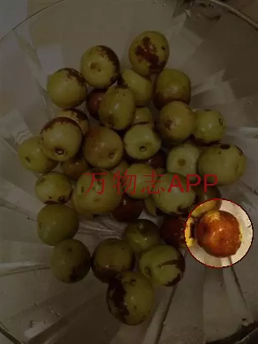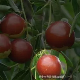 鸡蛋枣 果实特大,近圆形,平均单果重30克,最大50克。果实大小均匀,果皮厚,深红色。鲜枣可溶性固形物含量31%-35%,可食率97%。果肉质细,酥脆多汁,香甜可口。9月中下旬开始成熟,成熟期遇雨不易裂果,耐贮茂,是优良的鲜食、制干、蜜饯兼用品种,旱台地和水地均可栽培。