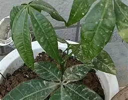 瓜栗 Walp. ),俗称发财树,木棉科小乔木,高4-5米,树冠较松散,幼枝栗褐色,无毛。小叶具…