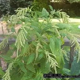反枝苋是苋科苋属的一年生草本植物。株高达1米;茎密被柔毛;叶菱状卵形或椭圆状卵形,先端锐尖或尖凹,…