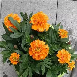 万寿菊是菊科万寿菊属一年生草本植物,别名孔雀菊、缎子花、臭菊花、西番菊、红黄草、小万寿菊、臭芙蓉、孔雀草。万寿菊茎近基部分枝。叶羽状分裂,长5-10厘米,宽4-8厘米,裂片长椭圆形或披针形,具锐齿,上部叶裂片齿端有长细芒,叶缘有少数腺体。头状花序单生,径5-8厘米,花序梗顶端棍棒状。总苞长1.8-2厘米,径1-1.5厘米,杯状,顶端具尖齿。舌状花黄或暗橙黄色,长2.9厘米,舌片倒卵形,长1.4厘米,基部成长爪,先端微弯缺。管状花花冠黄色,长约9毫米,冠檐5齿裂。瘦果线形,被微毛;冠毛有1-2长芒和2-3短而钝鳞片。花期7-9月。万寿菊中国各地均有栽培,在广东和云南南部、东南部已归化,国外原产墨西哥。万寿菊对土壤要求不严,但以肥沃疏松排水良好的土壤为好。耐移栽,种子发芽适温21-24℃,植株生长适合温度为20-29℃。喜温暖和阳光充足的环境,不