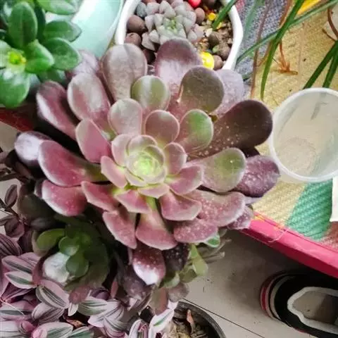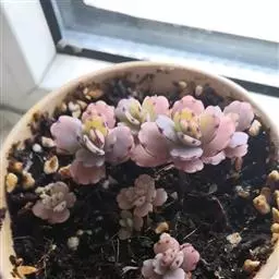 大和锦是景天科拟石莲花属的多肉植物。肉质叶排成紧密的莲座状,广卵形至散三角卵形,背面突起呈龙骨状,…