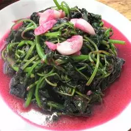 苋菜 ,又名雁来红、老少年、老来少、三色苋 , 苋科、苋属一年生草本,茎粗壮,绿色或红色,常分枝,…