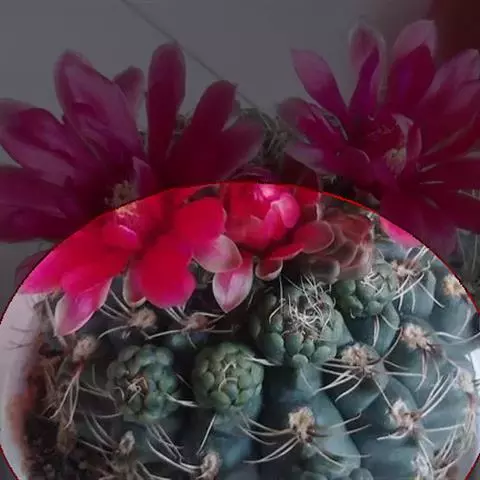 绯花玉 Speg.)是仙人掌科、裸萼球属多肉植物,植株呈扁球形,表皮墨绿色,刺针状,…