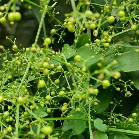 浆果球形,单生或孪生,直径约4-5毫米,成熟时黑色。花期4-6月,果期6-9月。