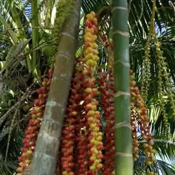 蛇皮果(学名:Salacca zalacca (Gaertn.) Voss)是棕榈科,蛇皮果属植物,植株相对较小,雌雄异株,叶羽状全裂,羽片披针形或线状披针形,呈“s”形或镰刀状;花序生于叶闻,总花序梗及分枝被包于宿存的佛焰苞内,花萼和花冠管状,花丝短,果实球形、陀螺形或卵球形,顶端具残留柱头,种子长圆形、球形或钝三棱形,味酸或甜,胚乳均匀、坚硬,胚基生。