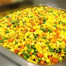 3.锅中倒入清水,放入青豆、玉米、胡萝卜粒,煮熟,捞出。
