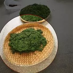 菠萝炒饭 提前一天用椰子汁蒸好一锅米饭,因为炒饭用隔夜饭炒的最好。新做的饭太湿。 蒸好米饭 把菠萝一切两半,然后把菠萝肉挖出来后切成小丁,菠萝壳和菠萝丁都备用。 切好菠萝 香菇末、火腿末、甜玉米、青豆,先一起炒熟备用。 炒好材料备用 蛋打散,加点生粉(淀粉),炒熟后切待用。 打鸡蛋 新鲜的虾仁过油,放2茶匙的海鲜酱,炒至半生盛出 炒虾仁 在锅里继续放一点点油炒香洋葱末,洋葱炒香后放入3大匙泰式黄咖喱,把饭放入,翻炒到颜色均匀。