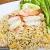 炒米饭 然后放入炒好的杂菜,炒匀,再放蛋皮丝,菠萝丁,最后放入虾仁。千万不要搞错顺序哦,菠萝放早了太湿。虾仁放早了就缩没了。