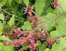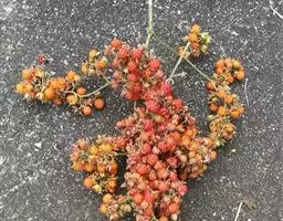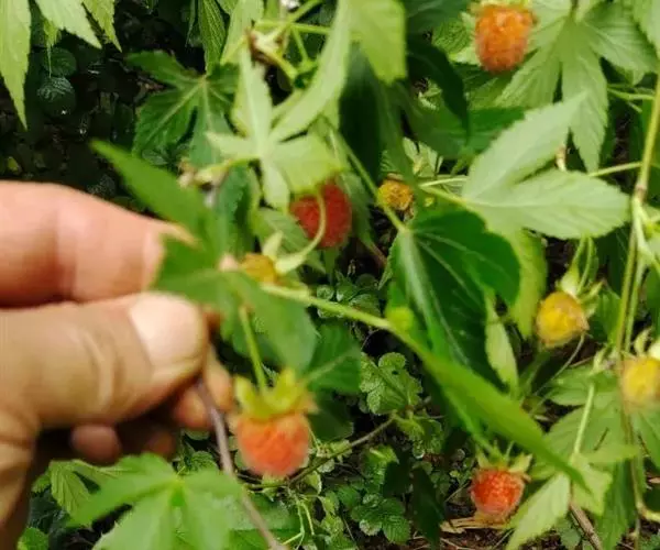 掌叶覆盆子的采收时问为5月中旬至6月上旬,此时果实已充分发育且呈现绿色,尚未转红成熟,当果实呈鲜红色、略带香气时,适时采收。采收时分批进行,采下后,除去梗、叶、花托和其它杂质,然后倒人沸水中烫2-3分钟再捞出,随后摊晒或烘干。成品以果粒完整、色呈黄绿、略带酸味、无梗叶屑者为佳。一般在16:00后采收为宜,切忌在早晨和雨天进行。