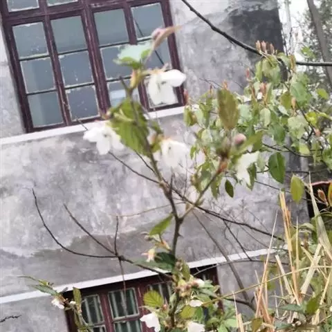 单花腋生,直径2.5-4厘米;花梗长2-3.5(4)厘米,无毛;萼筒毛较稀或近无毛;萼片卵形或卵状长圆形,顶端具凸尖头,外面密被短柔毛;花瓣椭圆形或卵状长圆形,白色,顶端圆钝,长1-1.5厘米,宽0.7-1.2厘米;雄蕊多数,花丝宽扁;雌蕊多数,具柔毛。果实近球形,红色,直径1.5-2厘米,密被灰白色柔毛;核有皱纹。花期3-4月,果期5-6月。