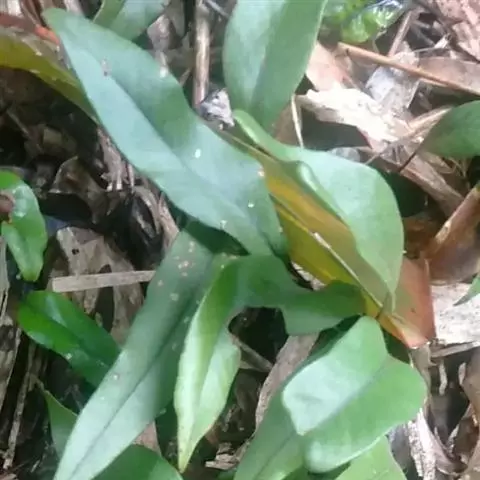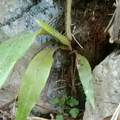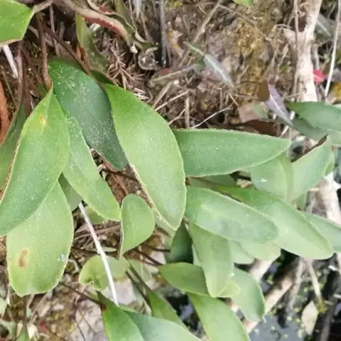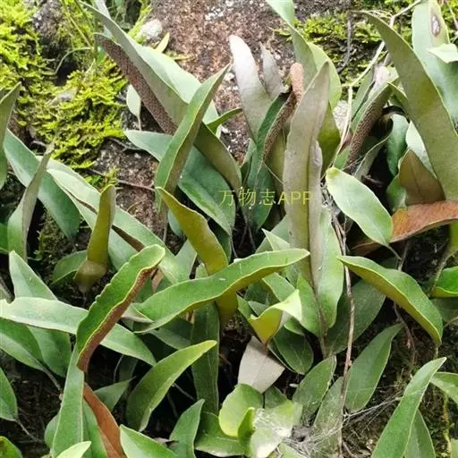 中型附生蕨类 ,植株通常高10-30厘米。根状茎长而横走,密被鳞片;鳞片披针形,长渐尖头,淡棕色,边缘有睫毛。叶远生,近二型;叶柄与叶片大小和长短变化很大,能育叶通常远比不育叶长得高而较狭窄,两者的叶片略比叶柄长,少为等长,罕有短过叶柄的。不育叶片近长圆形,或长圆披针形,下部1/3处为最宽,向上渐狭,短渐尖头,基部楔形,宽一般为1.5-5厘米,长(5)10-(20)厘米,全缘,干后革质,上面灰绿色,近光滑无毛,下面淡棕色或砖红色,被星状毛;能育叶约长过不育叶1/3,而较狭1/3-2/3。主脉下面稍隆起,上面不明显下凹,侧脉在下面明显隆起,清晰可见,小脉不显。