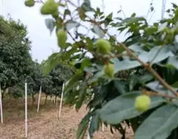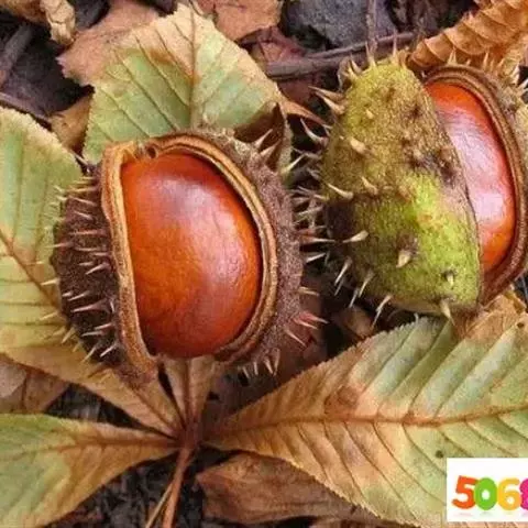 果实系近于球形的蒴果,直径6厘米,褐色,有刺长达1厘米;种子栗褐色,通常1-3粒,稀4-6粒,种脐淡褐色,约占种子面积的1/3至1/20。花期5-6月,果期9月。