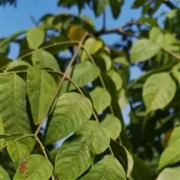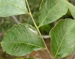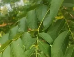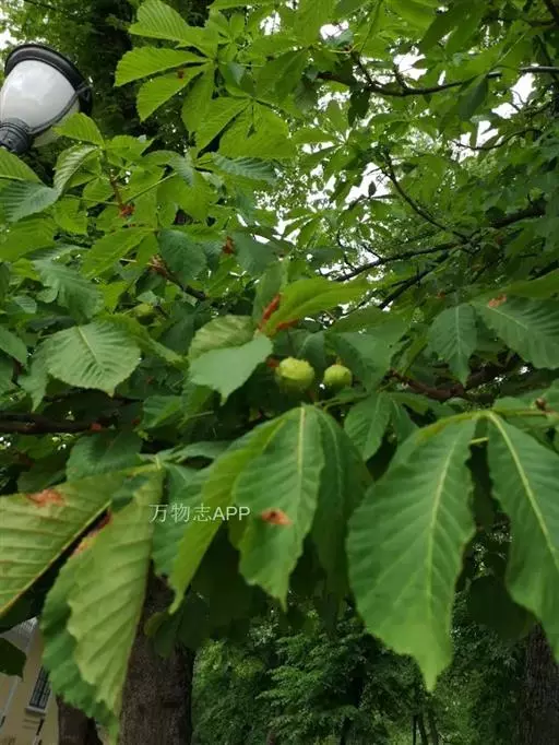 欧洲七叶树 落叶乔木,通常高达25-30米,胸高直径2米。小枝淡绿色或淡紫绿色,嫩时被棕色长柔毛,其后无毛。冬芽卵圆形,有丰富的树脂。掌状复叶对生,有5-7小叶;小叶无小叶柄,倒卵形,长10-25厘米,宽5-12厘米,先端短急锐尖,基部楔形,边缘有钝尖的重锯齿,上面深绿色,无毛,下面淡绿色,近基部有铁锈色绒毛,主脉凸起,侧脉约18对,在两面均显著;叶柄长10-20厘米,无毛。