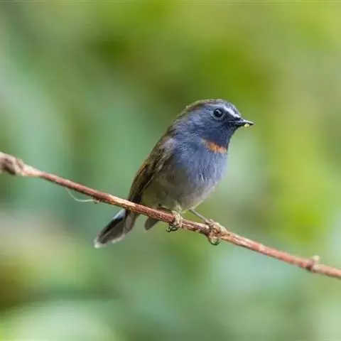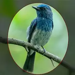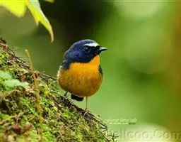 山蓝仙鹟:小型鸟类,体长13-15厘米。雄鸟额基和眼先黑色,颏橙棕色,仅颏尖为蓝黑色,…