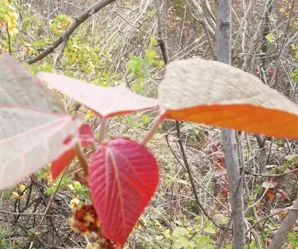 落叶灌木,高1-4(-5)米;嫩枝被灰白色短绒毛,一年生小枝具微柔毛。叶薄纸质,阔卵形或近圆形,长8-15厘米,宽7-14厘米,顶端渐尖,基部心形、浅心形或近截平,边缘具粗锯齿或具细齿,齿端具腺体,上面沿叶脉具短柔毛,下面被短柔毛,基部具斑状腺体2或4个;基出脉3条;小托叶线状,长3-4毫米,具短毛;叶柄长2-10厘米,具短柔毛,托叶披针形,长6-8毫米,基部宽1-1.5毫米,具短毛,早落。