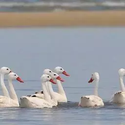 扁嘴天鹅:体长90-115厘米,体羽白色,羽端黑色,在飞行时则很明显。雁喙和脚红色。…