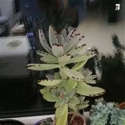 褐斑伽蓝是景天科伽蓝菜属的多年生多肉类植物,茎直立,多分枝,叶生于枝上,肉质叶片匙形,…