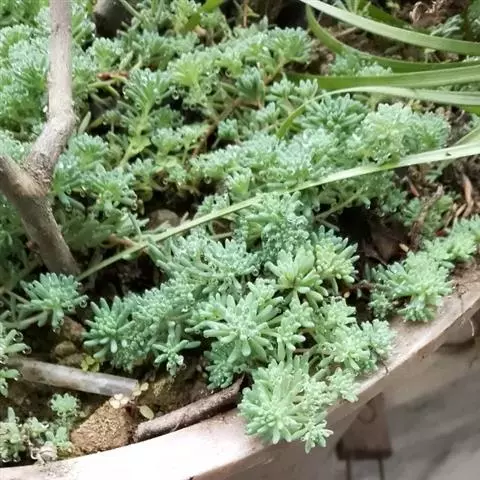 薄雪万年草别名矶小松,景天科景天属多年生草本植物,其细小的蓝绿色棒状叶片环绕生长于茎端,…