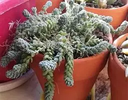 蓝黛莲是一种景天科厚叶草属植物。叶片呈略扁的圆柱形,排列成莲座状;颜色为灰绿色,…