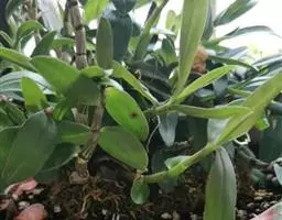 大花盆距兰 Kuntze):茎粗壮,长2-5厘米,节间长约1厘米。叶大,带状或长圆形。伞形花序侧生…
