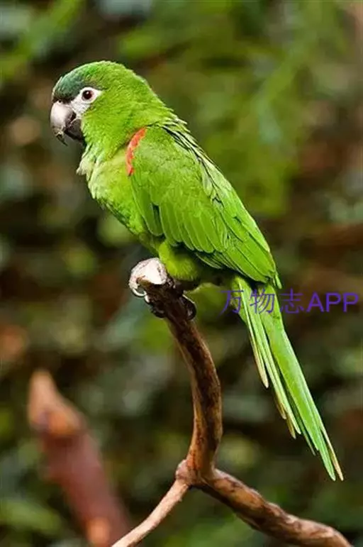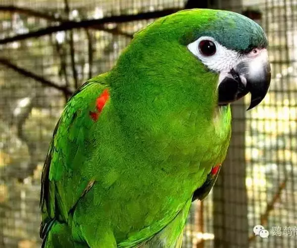 红肩金刚鹦鹉体长30-34厘米,体重130-170克。鸟体为绿色,停栖落时看起来全部是绿色,翼下覆羽为红色。面部有裸皮是所有金刚鹦鹉的特点,通常为白色。雄鸟的头比雌鸟大而圆。鸟喙呈黑色,另一种贵族品种的喙为褐色,只有尖端为黑色。幼鸟羽色比成鸟暗淡,头部有少许蓝羽毛,有些雏鸟长成时翅上有一点点红羽毛。平均寿命20年。红肩金刚鹦鹉是所有的金刚鹦鹉中体型最小的,可爱的模样非常讨人喜爱。 [1-2]