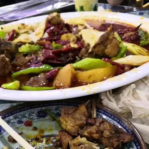 新疆大盘鸡又名为沙湾大盘鸡,是新疆名菜,起源于20世纪80年代,主要用料为鸡块和土豆块、四川粉皮,…