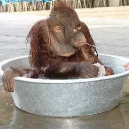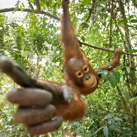 猩猩也叫人猿,灵长目人科 的一属,与猴子最大不同的地方就是没有尾巴,能用手或脚拿东西。马来语和印…