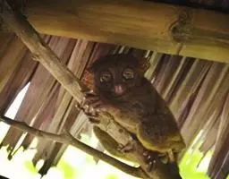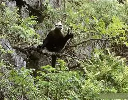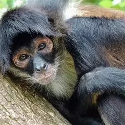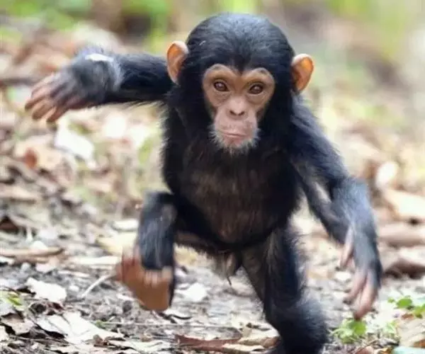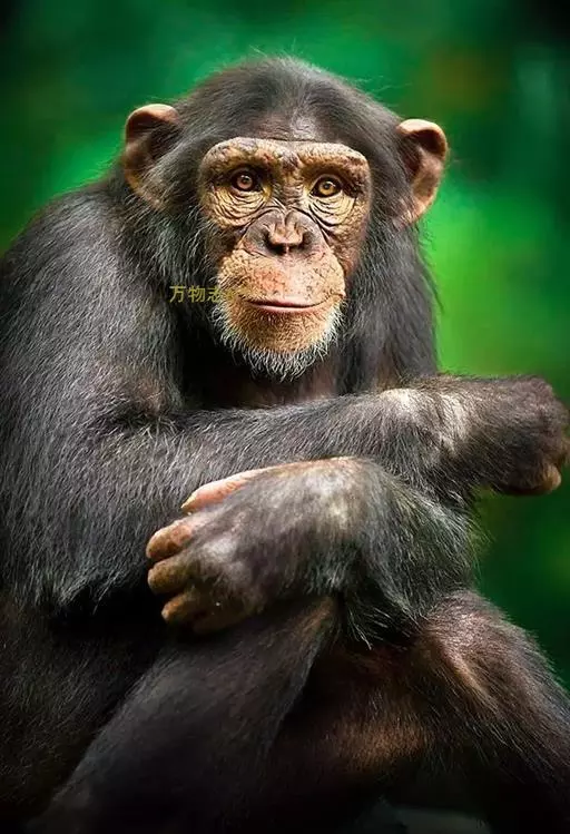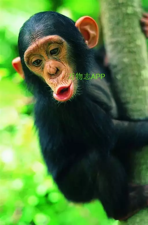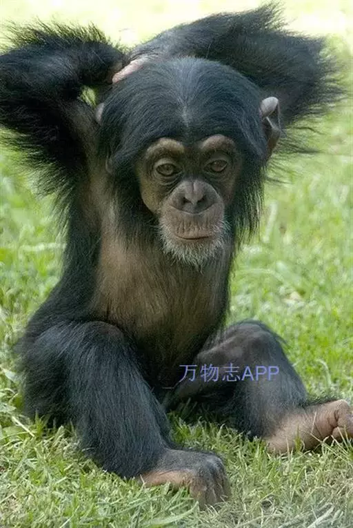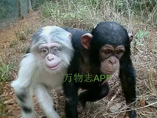 黑猩猩(学名:Pan troglodytes):人科 ,体长70-92.5厘米,站立时高1-1.7米,体重雄性56-80千克,雌性45-68千克;身体被毛较短,黑色,通常臀部有1白斑,面部灰褐色,手和脚灰色并覆以稀疏黑毛;幼猩猩的鼻、耳、手和脚均为肉色;耳朵特大,向两旁突出,眼窝深凹,眉脊很高、头顶毛发向后;手长24厘米;犬齿发达,齿式与人类同;无尾。