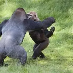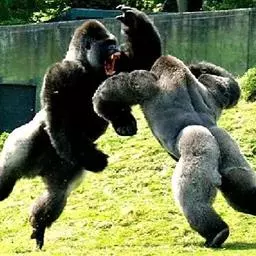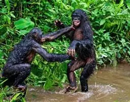 有个惊人的事实:黑猩猩甚至会去吃他们的近亲——其他灵长目动物,如疣猴、狒狒等。他们甚至向同类不同群的黑猩猩发起进攻,从而得到领地和食物,类似于人类的战争。
