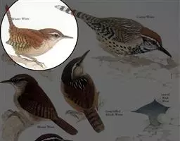 鹪鹩属:是一类小型鸣禽,身长在10-17厘米之间。头部浅棕色,有黄色眉纹;上体连尾带栗棕色,…