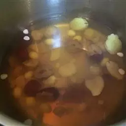 2、锅里加清水,烧开后加入材料1,加半勺老抽,2勺料酒混合成汤汁,煮3分钟;
