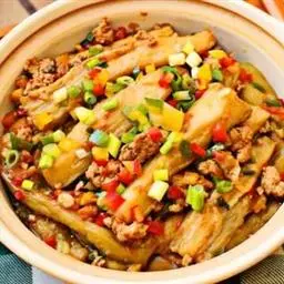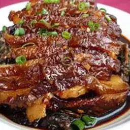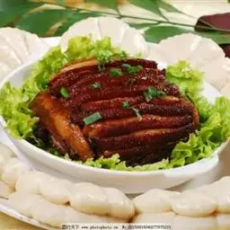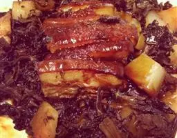 梅菜扣肉,汉族传统名菜,属客家菜 。制作材料有五花肉、梅菜、葱白、姜片等。