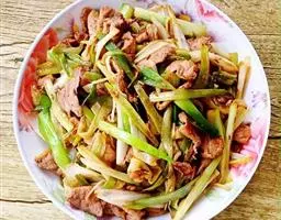 主料:五花肉200克,青蒜2棵。