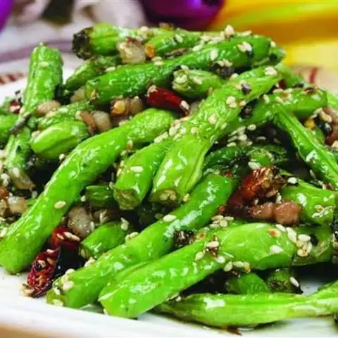 干煸四季豆是一道特色传统菜肴,属于川菜菜系,主要制作材料有四季豆、猪肉、红干辣椒等。干煸四季豆口味…