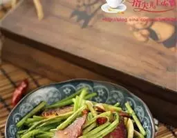 回锅肉 正宗的回锅肉,应该用香蒜苗作配料。在四川,夏秋时节,这种又细又长的蒜苗上市了,人们知道,一年中,吃回锅肉的好时候到了。有人用一种很粗、叶子又长又宽的蒜苗作配料,川人叫它是葱蒜苗,一股冲鼻的坏葱味,真坏了回锅肉的举世英名。