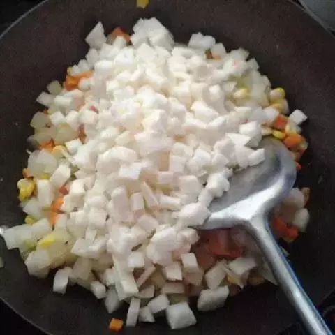 翻炒至出红油后,再放入一匙生抽,料酒翻炒片刻。(如豆瓣酱放的多,也可免放生抽,不然会太咸)