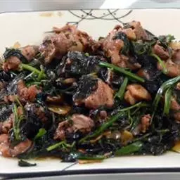最后放入青蒜叶,翻炒片刻即可出锅