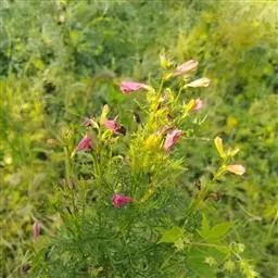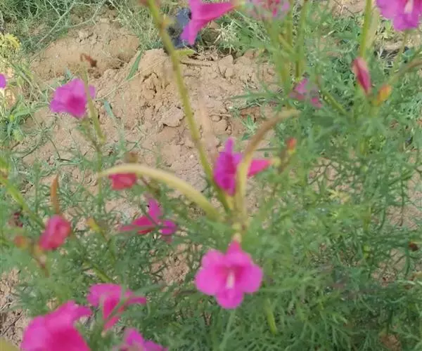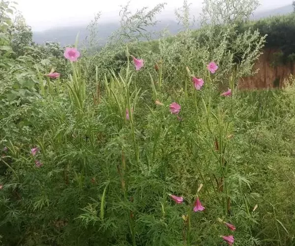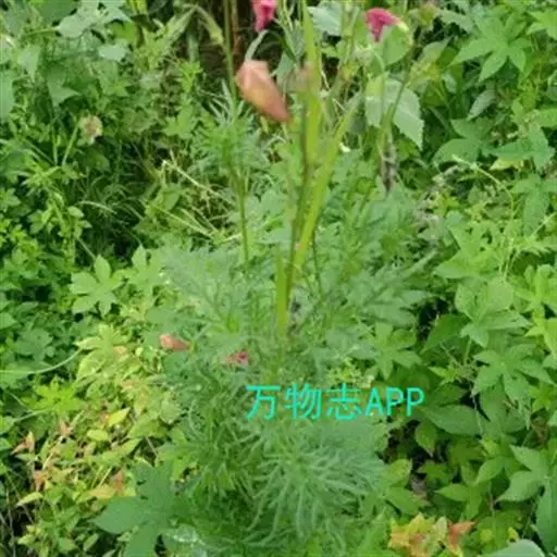 一年生至多年生草本,具分枝的茎,高达80厘米。根近木质而分枝。叶互生;叶柄长1~3厘米;叶片二至三回羽状细裂,小叶不规则细裂,末回裂片线状披针形,具细齿或全缘。顶生总状花序,疏散,长达20厘米;花梗长1~5毫米;小苞片绿色,线形,长3~5毫米;花萼钟状,绿色带紫红色,长、宽均约5毫米,萼齿间皱褶2浅裂;花冠淡玫瑰色或粉红色,有时带紫色,钟状漏斗形,先端5裂,裂片圆形;雄蕊4,2强,花药成对靠合;子房上位,2室,柱头2裂。蒴果淡绿色,细圆柱形,先端尾状渐尖,长3.5~ 5.5厘米,粗约5毫米:种子扁圆形,细小,直径约2毫米,四周具透明的膜质翅,先端具缺刻。花期5~9月,果期10~ 11月 。