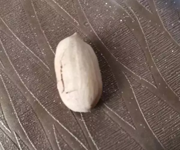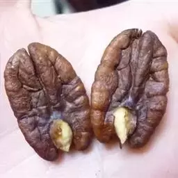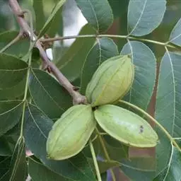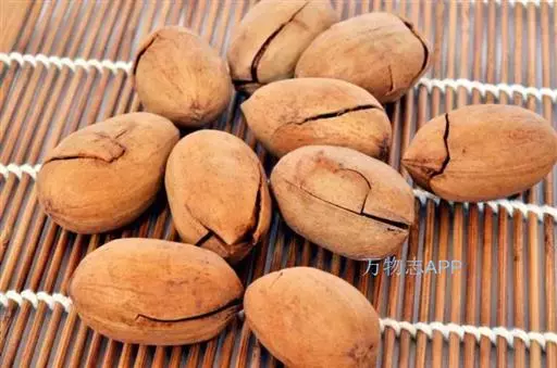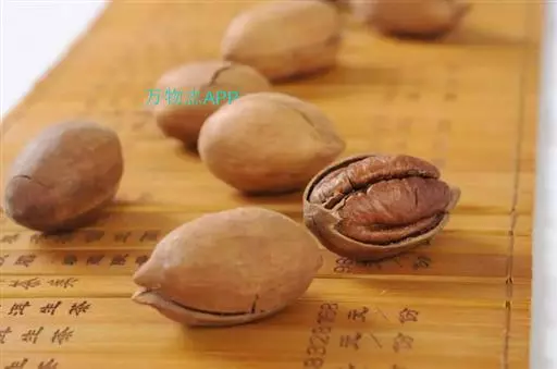 美国山核桃(Carya illinoensis Koch)属胡桃科的山核桃属,又名薄壳山核桃或长山核桃,英文名为Pecan或Hickory,原产北美大陆的美国和墨西哥北部,现已成为世界性的干果类树种之一。由于其种仁有优异的食疗保健价值。比香榧大一号,剥开是像核桃一样的果肉。壳很脆,特别好剥,就跟香榧一样脆,而肉质介于大核桃与小核桃之间。