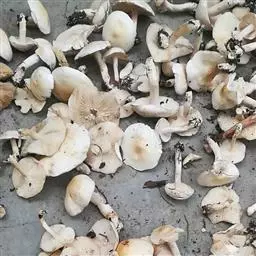 双孢蘑菇 从菌盖直径达2cm开始,直到将近成熟,菌幕破裂前均适于采收,用于制罐头的需用菇体较小的幼菇,以直径2-3.5cm为宜。出菇期如气温高于18℃时,菇床上易产生薄皮开伞菇,故应提前采收。蘑菇除鲜食外,可用盐渍或制罐头的方法加工贮藏。还可制成干蘑菇片。盐渍时,将菇分级后,切去柄根,洗净,放在饱和食盐水中煮沸约5分钟,捞起沥干,置加有饱和食盐水的容器内盐渍。容器内插入通气管,每日通气2-3次,或每隔数日翻动1次。2-3周后,将腌好的菇体置饱和食盐水中,在低温(15℃以下)下可保存半年。