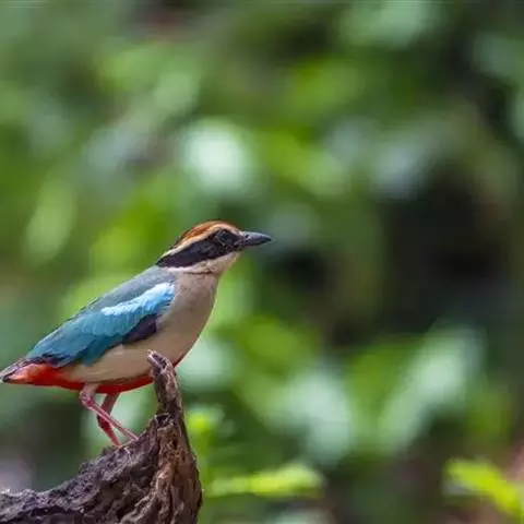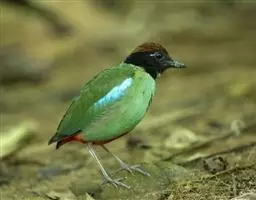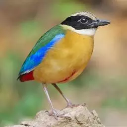 蓝翅八色鸫是雀形目八色鸫科的鸟类。体长17-20厘米,体重类约48-70克,体型圆胖,尾短,腿长,…