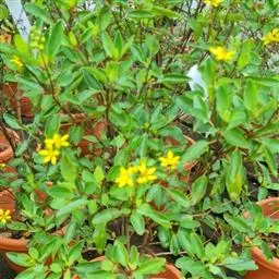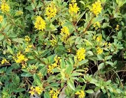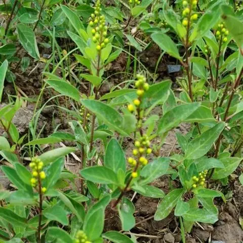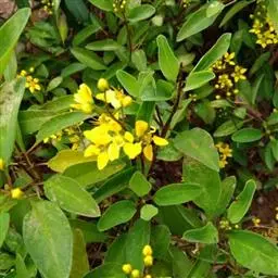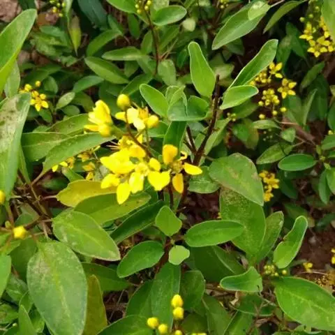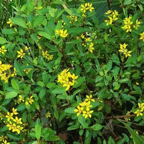 金英常绿灌木,株高约50-160厘米,嫩茎红色。叶片绿色,对生,椭圆形,先端尖,基部楔形,全缘。…