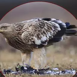白肩雕:又名御雕,是大型猛禽。体长73-84厘米。体羽黑褐色,头和颈较淡,肩部有明显的白斑,在黑褐…
