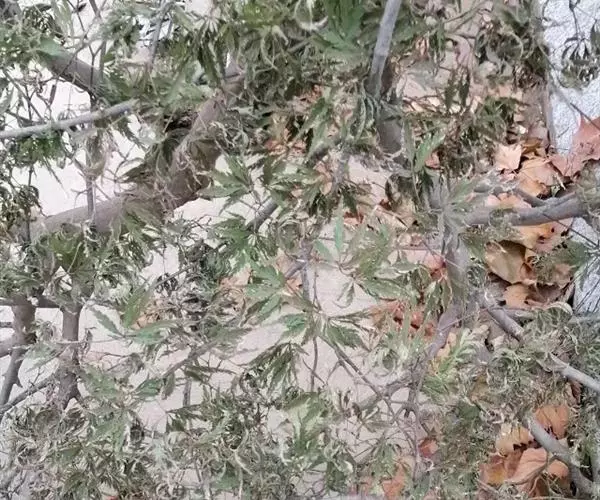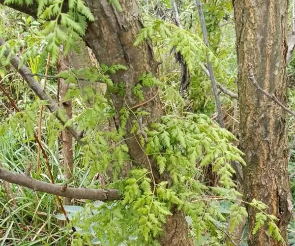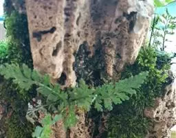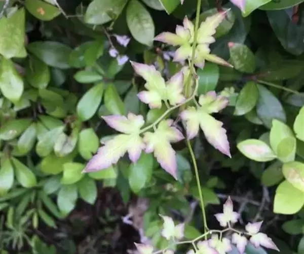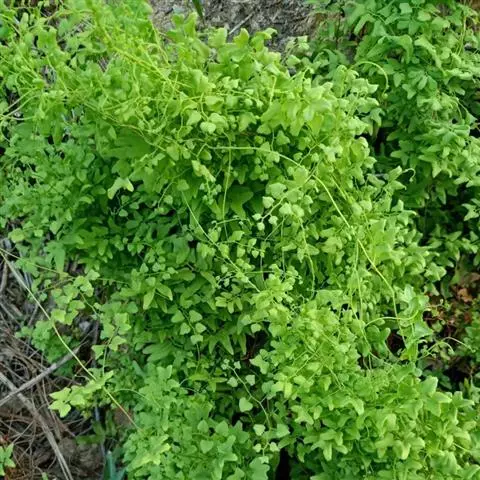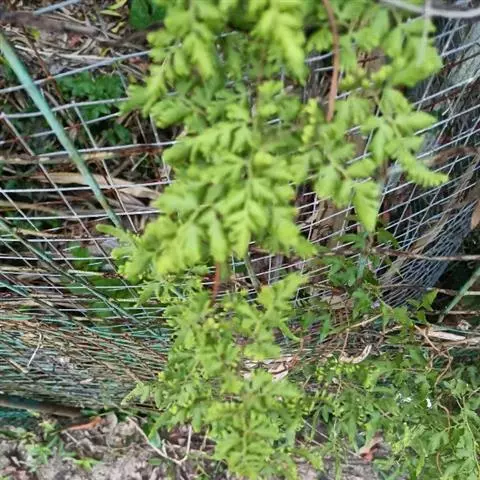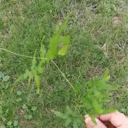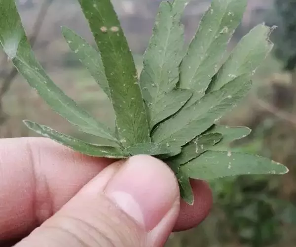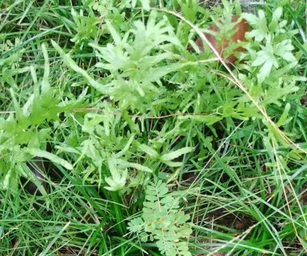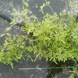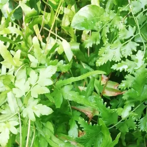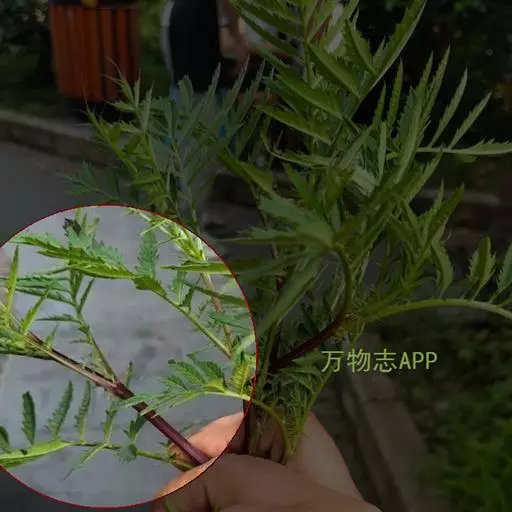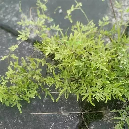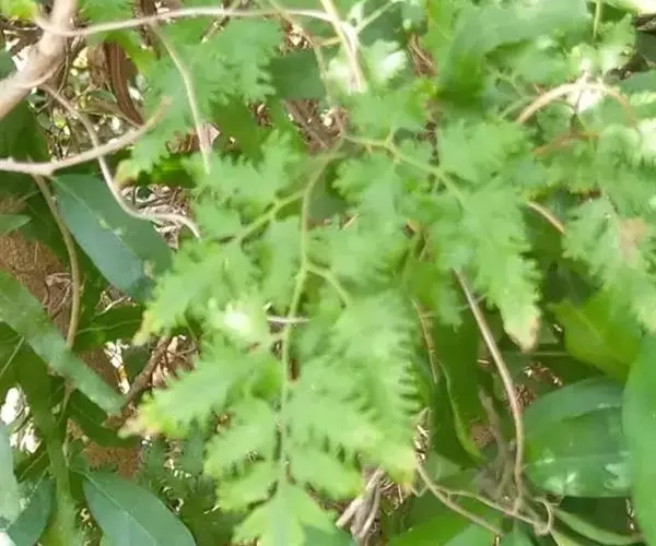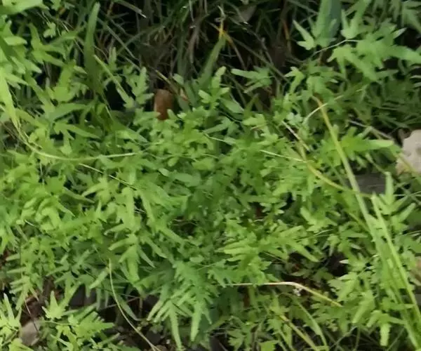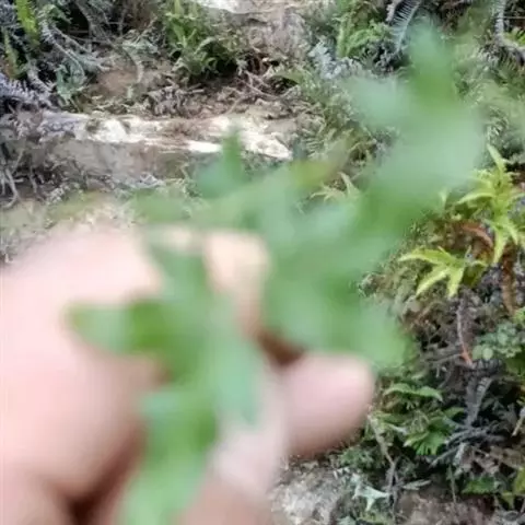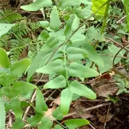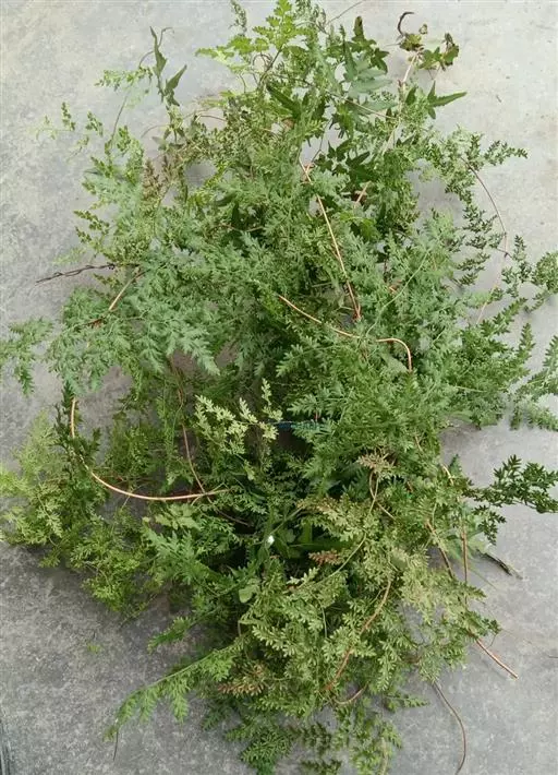 多年生草质藤本,长1~5m。根状茎横走,生黑褐色有节的毛;根须状,黑褐色,坚韧,亦被毛。叶多数,对生于茎上的短枝两侧,二型,纸质,连同叶轴和羽轴有疏短毛:营养叶尖三角形,长、宽各10~300px,二回羽状,小羽片掌壮或3裂,宽3~8mm,边缘有不整齐的细钝锯齿,孢子叶卵状三角形,长、宽各10~500px,多收缩而呈深撕裂状。夏末,小羽片下面边缘生流苏状的孢子囊穗,穗长2~5mm,黑褐色,孢子表面有小疣。