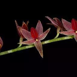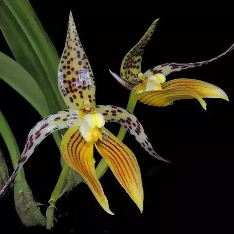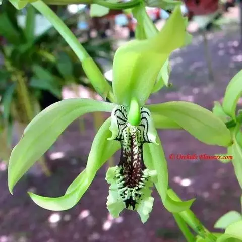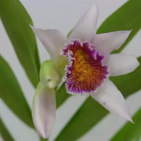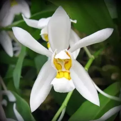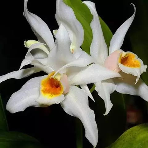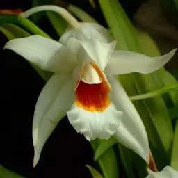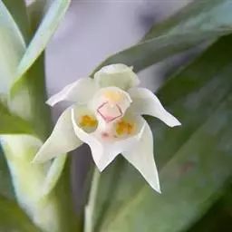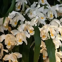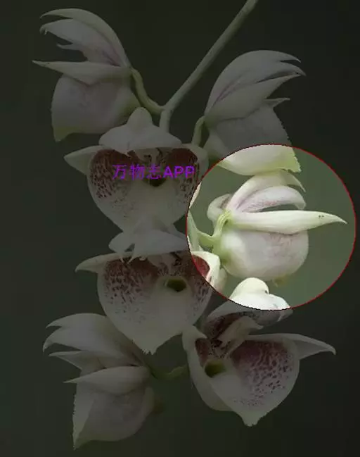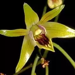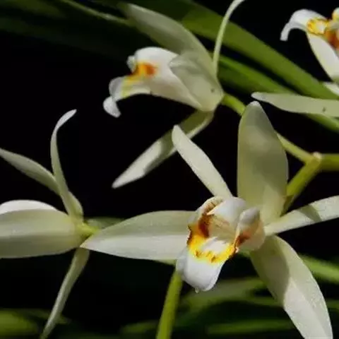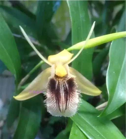 流苏贝母兰(学名:Coelogyne fimbriata Lindl.):根状茎较细长,匍匐,粗1.5-2.5毫米,节间长3-7毫米。假鳞茎狭卵形至近圆柱形,顶端生2枚叶。叶长圆形或长圆状披针形,纸质。花葶从已长成的假鳞茎顶端发出,长5-10厘米;总状花序通常具1-2朵花,花淡黄色或近白色,仅唇瓣上有红色斑纹;花瓣丝状或狭线形,与萼片近等长,宽0.7-1毫米;唇瓣卵形,3裂。蒴果倒卵形。花期8-10月,果期次年4-8月。