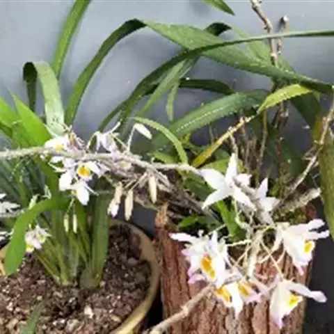 在春秋两季均可进行,一般每隔三年分株一次。凡植株生长健壮,假球茎密集的都可分株,分株后每丛至少要保存5个连结在一起的假球茎。分株前要减少灌水,使盆土较于。分株后上盆时,先以碎瓦片覆在盆底孔上,再铺上粗石子,占盆深度1/5至1/4,再放粗粒土及少量细土,然后用富含腐殖质的沙质壤土栽植。栽植深度以将假球茎刚刚埋入土中力度,盆边缘留2厘米沿口,上铺翠云草或细石子,最后浇透水,置阴处10-15天,保持土壤潮湿,逐渐减少浇水,进行正常养护。