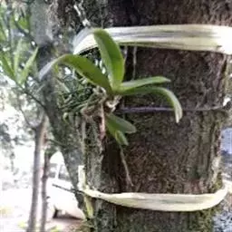 方法一 准备好兰盆及植料后,将兰株倒拿(根在上,叶在下)放于水龙头下以慢水冲洗,但水压切忌过强,以免伤兰根及叶子。用拇指和食指抓住兰头,小指抵住盆缘,用竹筷将根固定,当放入盆内时,尽量不要让根接触到盆壁。将豆粒大的混合石砾倒入盆底至三分之一处。然后倒入中粒植料至五分之四处,填实和尽量不要留下空间。将竹筷拔出,并摇实盆中植料。填实植料后,再用大粒植料埴入至距盆缘1.5厘米处。最后再倒入豆粒大植料,以将假鳞茎全部埋入土中为度,然后充分摇实。用压土工具轻压植料,并将表面弄平。种植完毕后,植料在盆中以中央稍高为好。